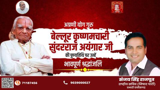 संजय सिंह राजपूत -बेल्लूर कृष्णमचारी सुंदरराज अयंगार की पुण्यतिथि पर विनम्र श्रद्धांजलि