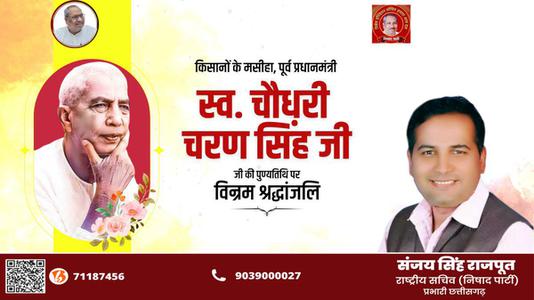 संजय सिंह राजपूत -चौधरी चरण सिंह जी   की पुण्यतिथि पर विनम्र श्रद्धांजलि