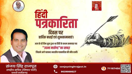 संजय सिंह राजपूत -हिंदी पत्रकारिता दिवस की आप सभी देशवासियों को हार्दिक शुभकामनायें