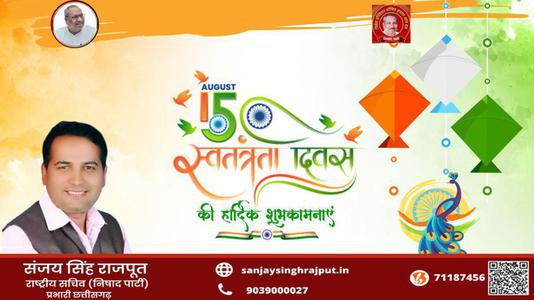 संजय सिंह राजपूत -स्वतंत्रता दिवस की हार्दिक शुभकामनाएं   आज़ादी का उत्सव आप सभी देशवासियों के जीवन म