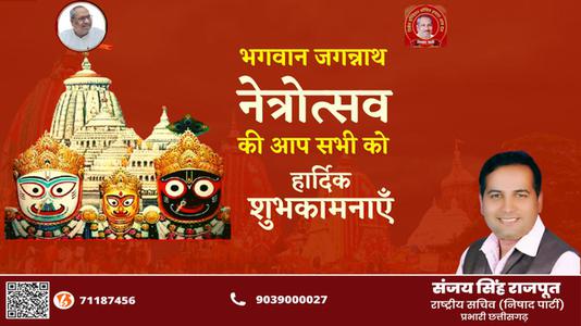 संजय सिंह राजपूत -जगन्नाथ नेत्र उत्सव की सभी देशवासियों को हार्दिक शुभकामनाएं