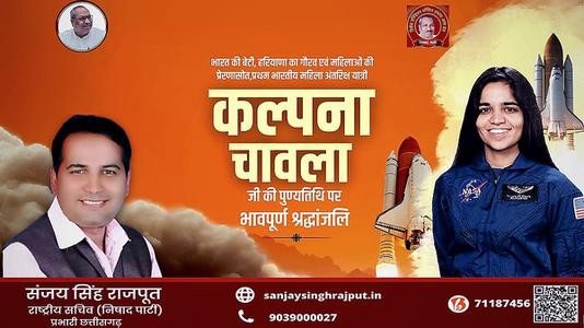 संजय सिंह राजपूत -महिला शक्ति की पर्याय, देश की बेटी कल्पना चावला को उनकी पुण्यतिथि   पर सादर नमन व विनम्र श्रद्धांजलि