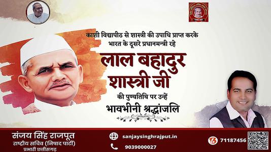 संजय सिंह राजपूत -लाल बहादुर शास्त्री जी की पुण्यतिथि पर विनम्र श्रद्धांजलि