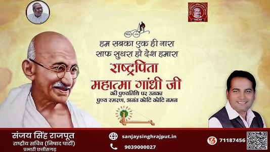 संजय सिंह राजपूत -स्वतंत्रता संग्राम के अमर दीप राष्ट्रपिता महात्मा गांधी जी की पुण्यतिथि पर   सादर नमन एवं विनम्र श्रद्धांजलि