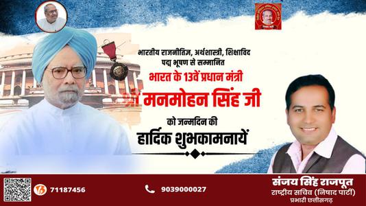 संजय सिंह राजपूत -श्री मनमोहन सिंह जी की जन्मदिन  की हार्दिक शुभकामनाएं