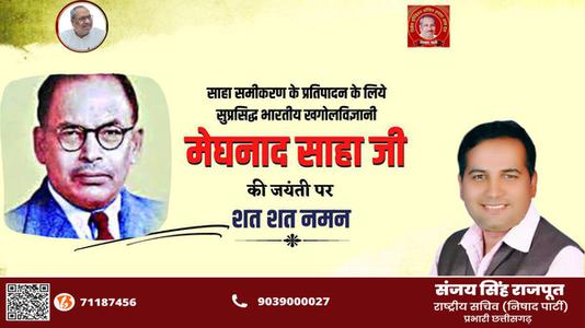 संजय सिंह राजपूत -महम खगोल विज्ञानी मेघनाद साहा जी की जयंती पर शत-शत नमन