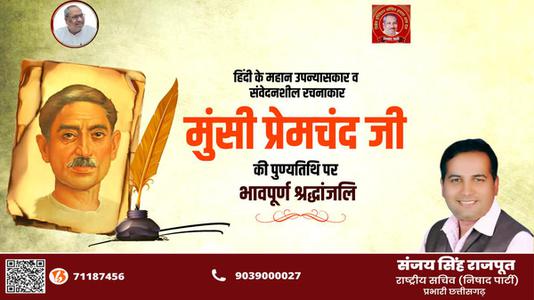 संजय सिंह राजपूत -मुंसी प्रेमचंद जी की पुण्यतिथि पर विनम्र श्रद्धांजलि