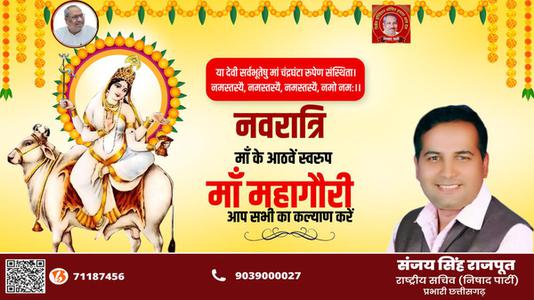 संजय सिंह राजपूत -नवरात्री के आठवें दिन माँ महागौरी की आप सभी को शुभकामनाये