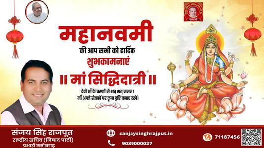 संजय सिंह राजपूत -नवरात्री के नौवें दिन माँ सिद्धिदात्री की आप सभी को शुभकामनाये