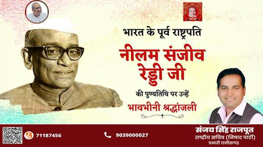 संजय सिंह राजपूत -नीलम संजीव रेड्डी जी की पुण्यतिथि पर विनम्र श्रद्धांजलि