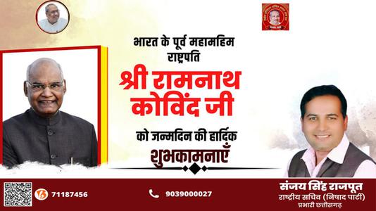 संजय सिंह राजपूत -रामनाथ कोविंद जी के जन्मदिन की हार्दिक शुभकामनाएं