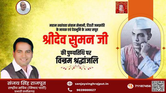 संजय सिंह राजपूत - श्रीदेव सुमन जी की पुण्यतिथि पर विनम्र श्रद्धांजलि