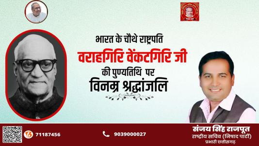 संजय सिंह राजपूत -श्री वराहगिरी वेंकट गिरी जी   की पुण्यतिथि पर  विनम्र श्रद्धांजलि