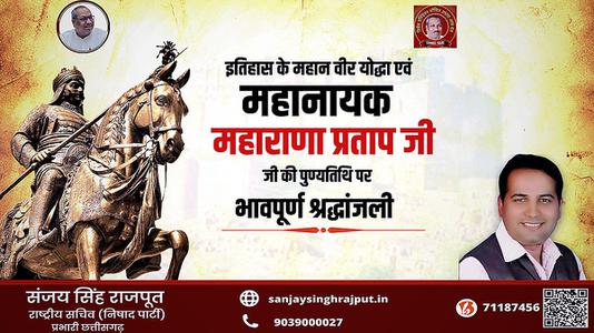 संजय सिंह राजपूत -वीरता, स्वाभिमान, शौर्य और पराक्रम की प्रतिमूर्ति, मातृभूमि की रक्षा के लिए अडिग वीर शिरोमणि महाराणा प्रताप जी की पुण्यतिथि पर कोटिश: नमन