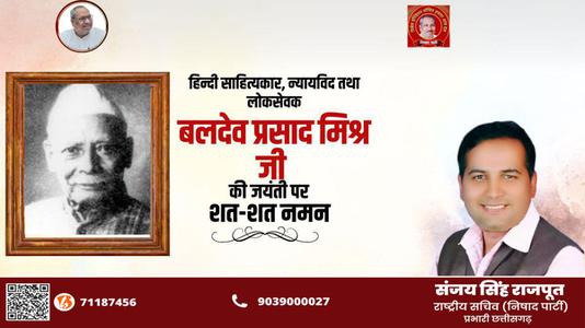 संजय सिंह राजपूत -बलदेव प्रसाद मिश्रा जी की जयंती    पर शत शत नमन