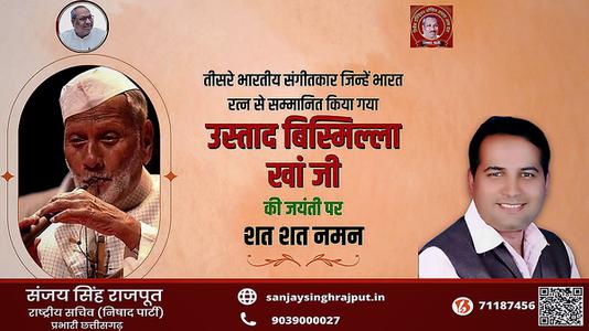 संजय सिंह राजपूत -तीसरे भारतीय संगीतकार जिन्हें भारत रत्न से सम्मानित किया गया उस्ताद बिस्मिल्ला ख़ाँ जी की जयंती पर शत-शत नमन
