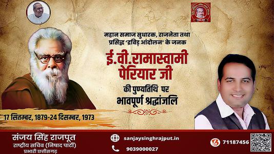 संजय सिंह राजपूत -ई.वी. रामास्वामी पेरियार जी की पुण्यतिथि पर विनम्र श्रधांजलि