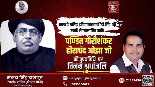 संजय सिंह राजपूत -भारत के प्रसिद्ध इतिहासकार गौरीशंकर हीराचंद ओझा की पुण्यतिथि पर विनम्र श्रधांजलि