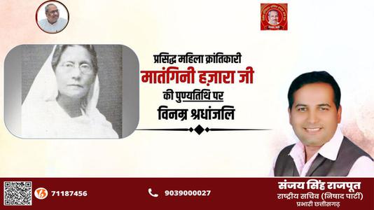 संजय सिंह राजपूत -प्रसिद्ध महिला क्रांतिकारी मातंगिनी हज़ारा की पुण्यतिथि पर विनम्र श्रद्धांजलि
