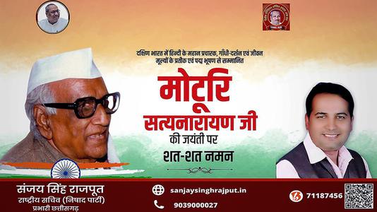 संजय सिंह राजपूत -पदम् विभूषण से सम्मानित मोटुरी सत्यनारायण जी की जयंती पर शत-शत नमन