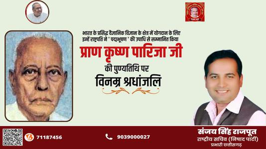 संजय सिंह राजपूत -प्राण कृष्ण पारिजा जी    की पुण्यतिथि पर  विनम्र श्रद्धांजलि