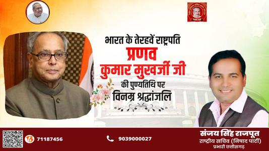 संजय सिंह राजपूत -प्रणव मुख़र्जी जी की पुण्यतिथि   पर विनम्र श्रधांजलि