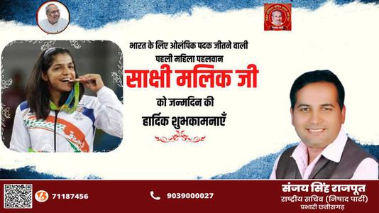 संजय सिंह राजपूत -साक्षी मलिक जी के जन्मदिन की हार्दिक शुभकामनाएं