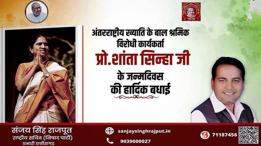 संजय सिंह राजपूत -अंतरराष्ट्रीय ख्याति के बाल श्रमिक विरोधी कार्यकर्ता शांता सिन्हा जी के जन्मदिवस की हार्दिक शुभकामनाएं