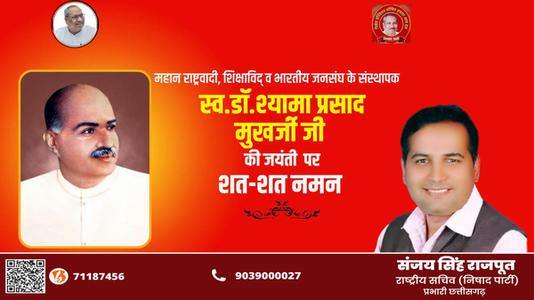 संजय सिंह राजपूत -श्यामा प्रसाद मुखर्जी जी की जयंती पर शत शत नमन