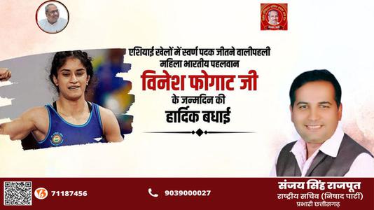 संजय सिंह राजपूत -विनेश फ़ोगाट जी के जन्मदिवस   पर हार्दिक शुभकामनाएं