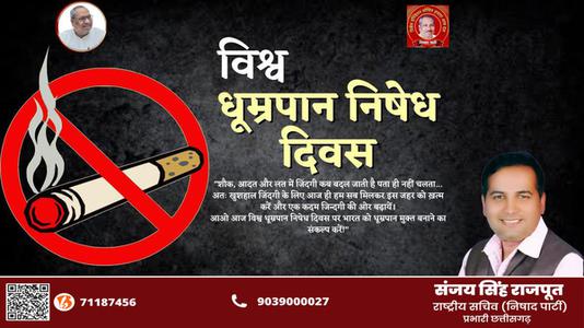 संजय सिंह राजपूत - विश्व तंबाकू निषेध दिवस   तंबाकू के उपयोग के हानिकारक और घातक प्रभावों के बारे में जागरूकता बढ़ाने का एक अभियान